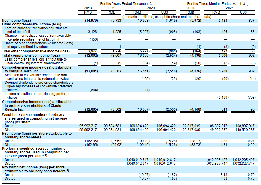 디디추싱의 매출은 2019년 큰 폭으로 증가했지만, 2020년 코로나의 영향으로 그 성장세가 주춤했다. 하지만 우버나 리프트의 경우보다 매출 감소 폭이 상당히 적은 편이었다. 최근 들어 주목할만한 점은 1분기 순이익이 흑자를 기록했다는 점이다. 2018년부터 서서히 감소시켜온 순손실이 올해 1분기에는 흑자로 전환되면서 수익성이 가시화되기 시작했다는 평가가 있다. 하지만, 영업이익은 여전히 적자이므로 추후 실적을 모니터링하면서 더 지켜볼 필요가 있어 보인다.